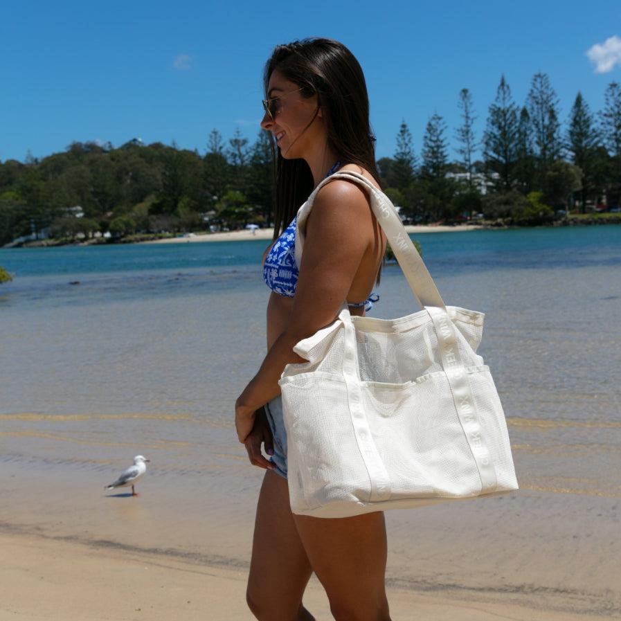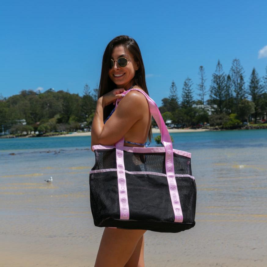 Introducing the oversized mesh beach bag you’ve always wanted. This bag features a secure zip top that opens up to a spacious interior, fitting everything you need from beach towels for the family, to lunch boxes, sunscreen, swimmers and more.